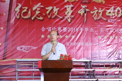 王远东副院长致辞。他回顾了改革开放四十年来国家的辉煌发展及我院的巨大变化,鼓励学子们珍惜大学生活,珍惜同学情谊,不断成长进步,在改革开放的征途上为国家发展贡献力量。