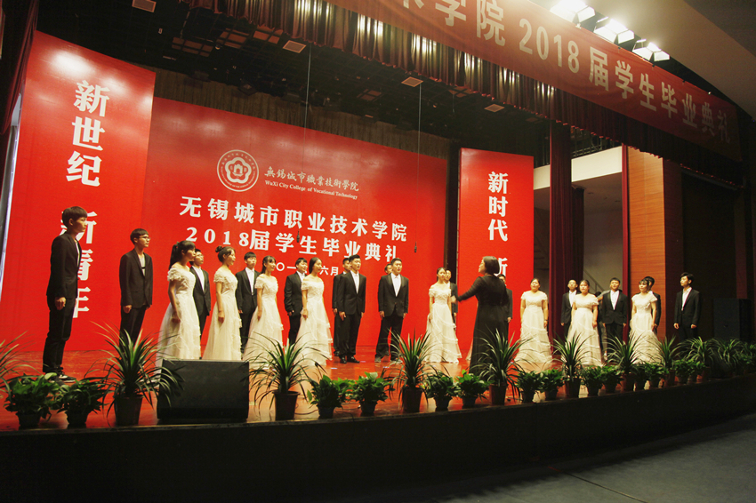 九时整,毕业典礼在庄严的国歌声中拉开帷幕。