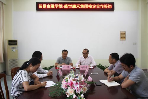 6月29日,贸易金融学院与江苏盛世康禾生物技术有限公司签订了校企合作协议。贸易金融学院副院长唐德淼、党总支副书记赵宏宾,江苏盛世康禾生物技术有限公司总经理刘骁、人力资源部经理尹振伟参加签约仪式。双方就深化产教融合,共同探索职业教育改革新模式,共建市场营销“订单班”等内容进行了更深层次的沟通座谈。