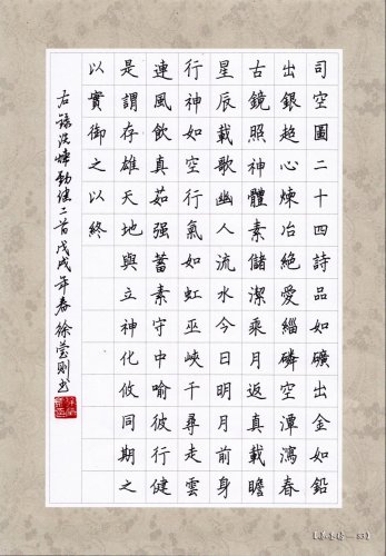 本次省高校硬笔书法共评出22名个人获奖者,其中一等奖1名、二等奖4名、三等奖5名,优秀奖12名。我院师范学院吴佳焱同学的硬笔楷书《荀子·劝学篇》、徐莹则同学的硬笔行书《司空图·二十四诗品·洗炼劲健》分别荣获大学组硬笔书法三等奖、优秀奖。无锡城市职业技术学院荣获省高校优秀组织奖,成为全省荣获此殊荣的16所高校之一。 吴佳焱同学作品(节选) 徐莹则同学作品 |