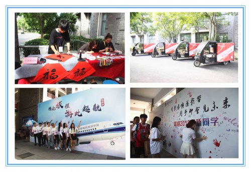 会计学院充分发挥专业优势,统计制作2018级新生“大数据”,大数据的展示使得每一位新生对自己的同学有了直观的了解,书法社团的同学们在迎新现场用笔墨为新生们送祝福,作品深受新生欢迎。贸易金融学院的八辆快递车在校园内穿梭,帮助新生运送行李,展示了快递运营管理这一国家级示范专业特色。45张学院特色活动照片组成“贸金”字样,多彩的大学生活让新生们充满期许。