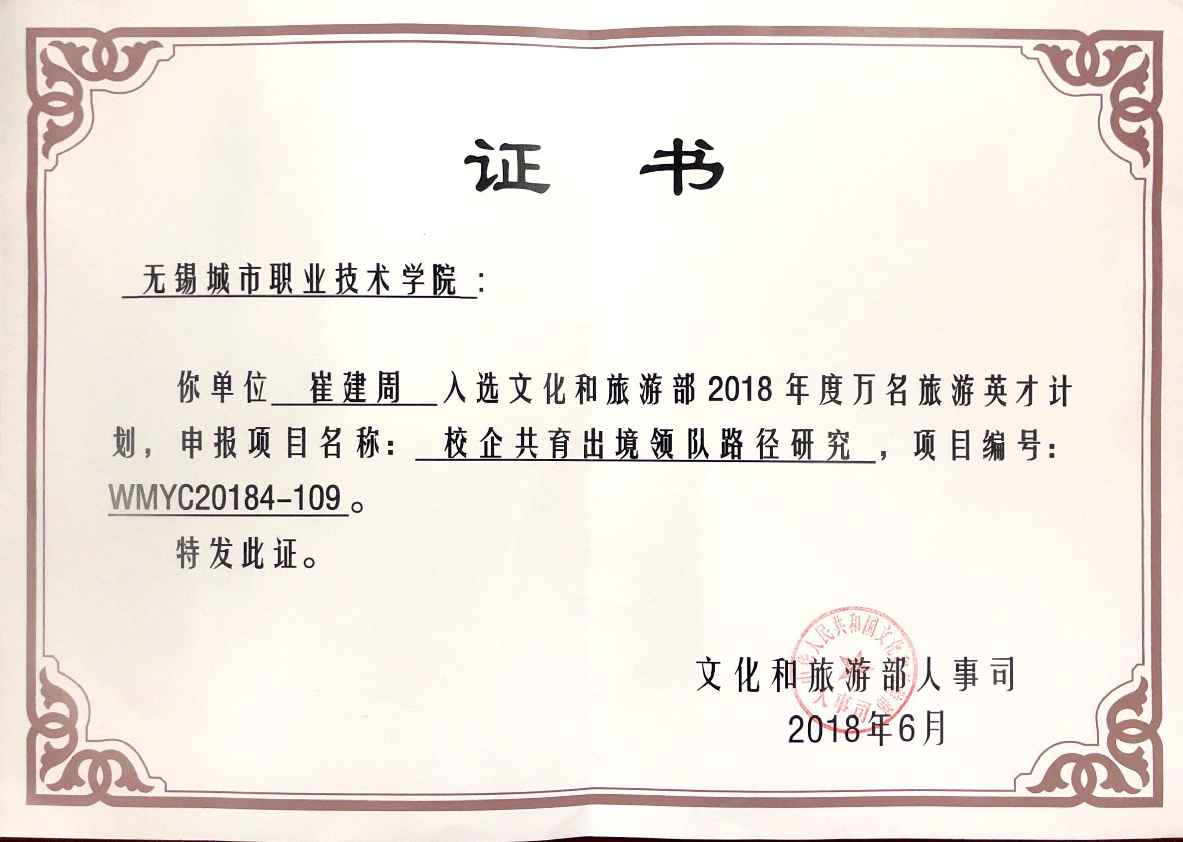 2012年,在江苏省旅游局和无锡市旅游局支持下,在无锡市旅游业协会的指导下,旅游学院与无锡中旅建立了国内首创的“全能领队”试点班,并开启了校企合作组合的新探索。项目实施五年多来,已经培养30多名出境领队,为出境旅游人才的培养做出了积极贡献。本次崔建周老师成功入选“万名旅游英才计划”,既是对全能领队项目的延续,也是对项目运行的总结与提升。将对学院深度开展全国旅游职业教育校企合作示范基地建设,以及旅游专业教学改革与师资队伍建设等起到积极促进作用。(撰稿:张一)