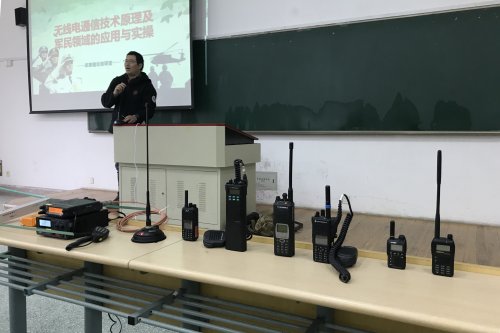 为了深入学习十九大精神,全面贯彻新时代党的强军思想,加强我校军事理论课程建设,我校军事理论教研室积极拓展军事理论教学渠道,近日,邀请到无锡龙天应急救援队、无锡应急救援与红十字会救援队长,无线电领域资深专家倪宙栋,和无锡业余无线电协会资深会员王海军,为军事理论教改实验班的全体同学进行了“无线电通信技术及其在军民领域的应用与实操”的专题教学。教学督导室、保卫处(人武部)部分领导和军事理论课全体兼职教师观摩了此次课程。