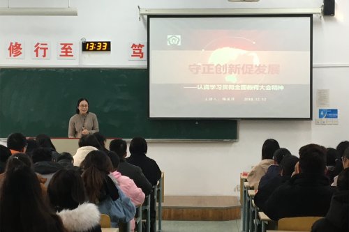 推行“战略举措”,争当“四有”好老师,切实把习近平重要讲话精神落到实处,不断提高党性修养和工作能力。随后以“德”为切入点,结合经典案例和自身阅历,对道德、师德、立德进行了详细解读,强调要重点关注人的发展和学院整体的发展。希望学院以习近平新时代中国特色社会主义思想为指导,围绕“教师教育出特色,学科水平上台阶”的思路,认真学习政治理论知识,提高业务能力,创新教学模式,以知促行,知行统一,利用专业特色优势在学校的发展中肩负起职责与使命,发挥更大更好的作用。