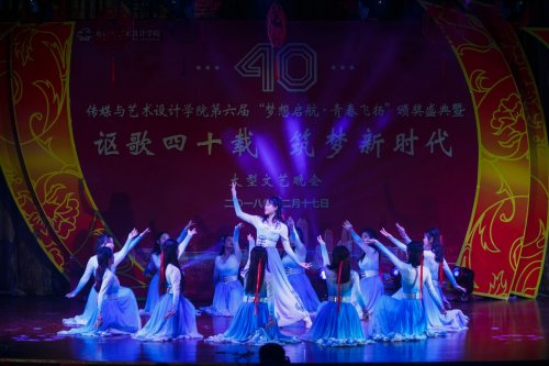 颁奖盛典以纪念改革开放四十周年为主题,共分为三个篇章。第一篇章“六年芳华·初心永恒”中,传艺学院江文副院长为颁奖盛典致辞并为“教改育人之星”、“传承育人之星”、“服务育人之星”、“教学明星”、“优秀班主任”颁发了荣誉证书,希望老师们把握新的时代契机,革故鼎新,继续为学院的发展贡献自己的青春和力量;随后,刘芳副书记宣读获奖学生名单,为获奖同学颁发荣誉证书,鼓励同学们发挥积极性、主动性和创造性,做新时代艺术设计的革新者。第二篇章“不负韶华·与国同行”中,铿锵的朗诵和曼妙的舞姿生动演绎了“一带一路”美好蓝图中的美丽中国,抒发了师生的民族自豪感和满腔赤诚。第三篇章“喝彩中华·圆梦传艺”中,王耕耘老师以一曲《春天的故事》歌颂了改革开放40年来中国发生的翻天覆地的变化,为此次盛典画上了圆满的句号。