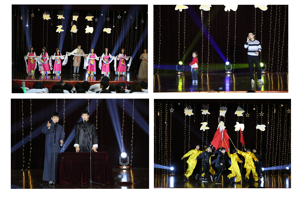 晚会在2018级武术表演《藏龙卧虎》中拉开帷幕,贸易金融学院党总支副书记赵宏宾为本场晚会致辞,勉励贸金学子脚踏实地、砥砺前行、不忘初心、不负韶华,以崭新的面貌迎接新年的到来。晚会中,同学们通过朗诵、舞蹈、歌曲、舞台剧、相声等形式演绎了改革开放四十周年来祖国取得的巨大成就,周桢老师的《卓玛》更是将现场气氛推向了高潮。