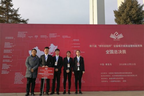 12月22日,第六届“博导前程杯”全国电子商务运营技能竞赛决赛在秦皇岛职业技术学院成功举办。由我校贸易金融学院学生组成的“Different”团队,通过近半年来的网店运营训练,在全国89所院校,92支晋级决赛队伍中脱颖而出,获得全国总决赛高职组三等奖。团队的指导老师曹翔、杜荣良获“优秀指导老师奖”,我校荣获“优秀组织单位”。