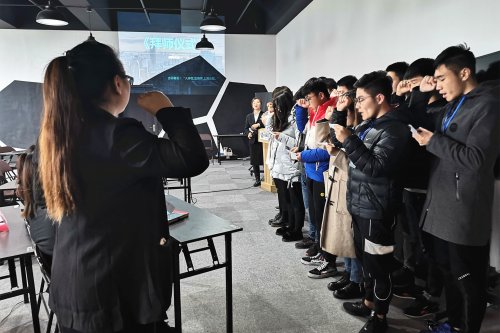 12月26日上午,苏州环秀湖花园物业中心三楼教室中,来自贸易金融学院物业1701班的15名实习学生分组拜见苏州华新国际物业管理有限公司的3名项目经理为师傅,师生先后进行了宣誓,开启贸易金融学院现代学徒制班“企业学习周”。