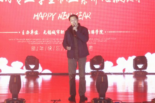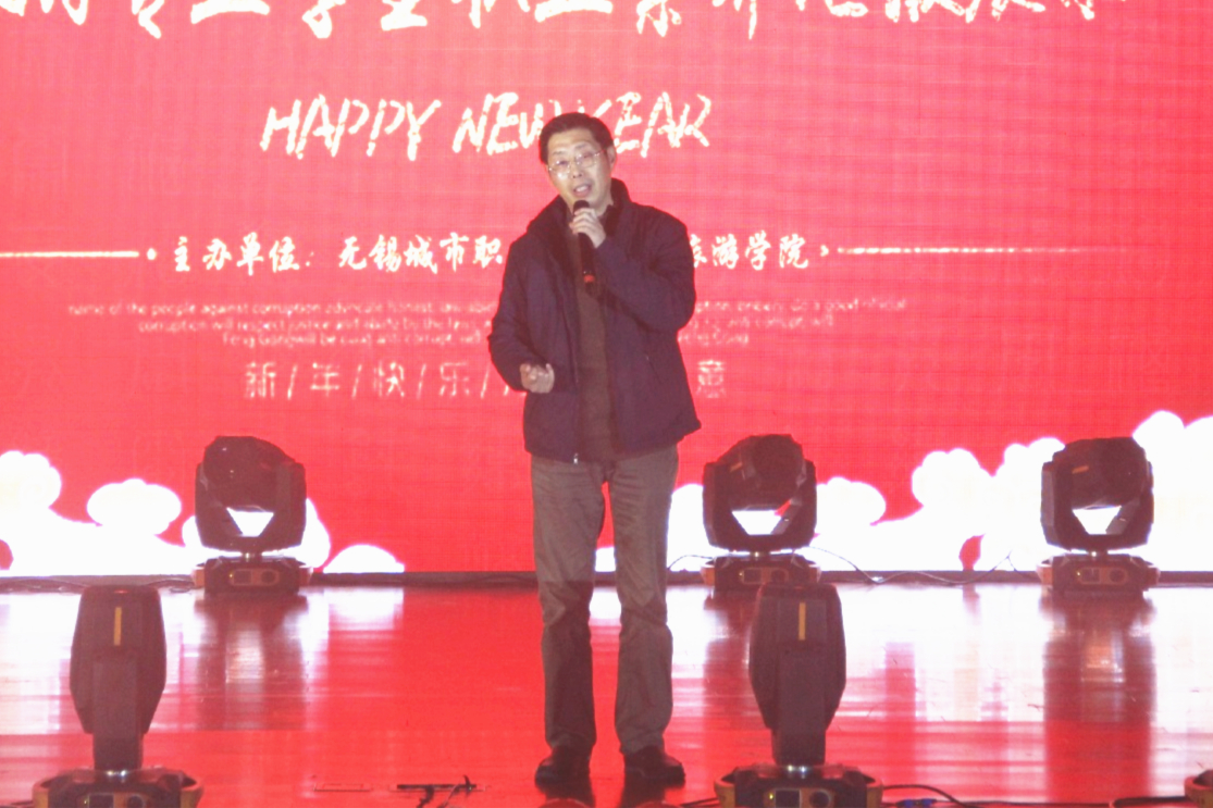 吴校长进行了热情洋溢的晚会致辞,鼓励同学们珍惜大学生活,勇于展现自我,期待旅游学院在新的一年能够发展得越来越好。