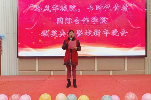为丰富同学们课余文化生活,搭建师生互动交流的平台。12月28日晚,基础课部(国际合作学院)在图文信息中心小报告厅举办的“思风华城院,书时代青春”颁奖典礼暨迎新年晚会。基础课部副主任赵芝英致新年贺词、党支部副书记时荣为获奖学生颁奖。 晚会以舞蹈作为开场,充分展现了学生的朝气蓬勃。话剧《Red and