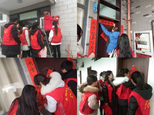 2日,青协志愿者们带着大家的祝福,为全校师生送上了同学们亲笔书写的对联和福字,办公室、食堂和宿舍门口都贴上了喜气洋洋的春联和福字,校园里充满浓郁的年味。 同学们浓情满满的祝福在寒冬给全校师生带去了浓浓的暖意,受到老师同学的一致好评。 |