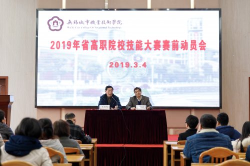 3月4日下午,我校在北校区图文信息中心小报告厅召开了2019年省高职院校技能大赛赛前动员会。校长张志祥出席并讲话,分管教学副校长吴雪纯主持。相关二级学院(部)行政负责人、分管教学负责人,全体指导教师,全体参赛学生,教务处相关人员参加了会议。