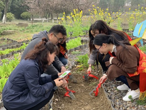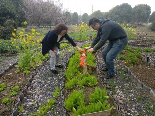 3月21日中午,师范学院师生在开心农场举行了春分播种启动仪式,也拉开了2019年“亲自然”实践探究活动的序幕。整个过程其乐融融,师生们一同手持锄具松土,一同动手播下种子,一同插放学生自制的稻草人。