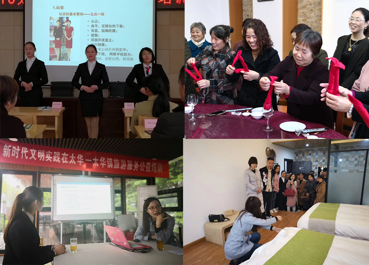 近期,旅游学院曹长波、孙春艳、王润老师和酒店管理系学生代表分赴宜兴太华镇参加“新时代文明实践在太华-太华镇旅游服务公益培训”