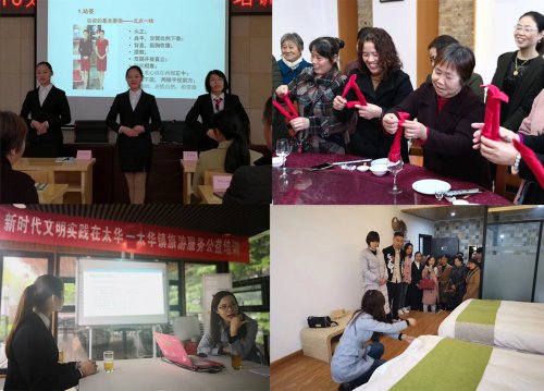 当前,乡村旅游发展势头强劲,正日益成为新一轮旅游业发展的“主力军”,是实现乡村振兴战略的“加速器”。我校自与宜兴市太华镇乾元村建立长期战略合作关系以来,稳步推进,紧密合作,建设乡村旅游人才培训基地,定期开展“送智下乡、送教入户”乡村旅游培训讲座,积极参加太华镇旅游文创产品创意设计大赛,提升我校服务地方经济的能力,助推乡村旅游发展。下一步,我校将加大培训力度,着力提升旅游扶贫带头人、管理人员的综合素质,促进乡村振兴的“提档增速”,全面推进产学研深度融合,不断深化旅游职业教育校企合作示范基地、全国职业院校旅游类示范专业和酒店管理省品牌专业成果。(撰稿:杨婕)