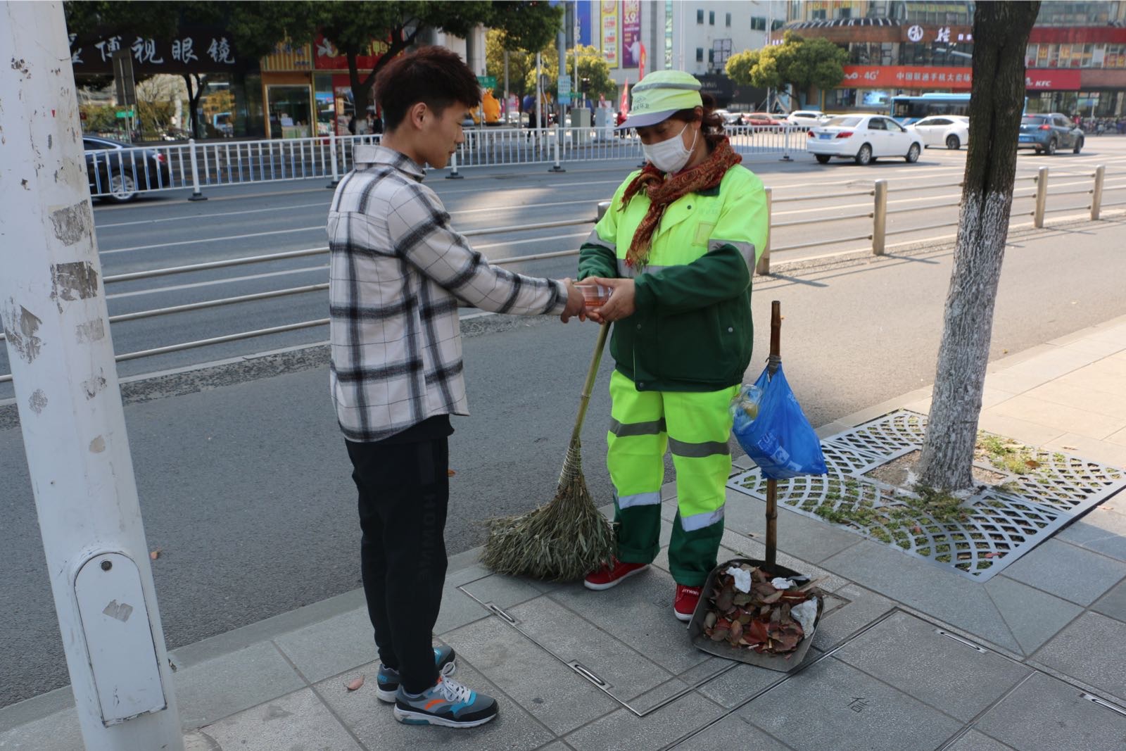 4月14日,旅游学院学生开展了“爱心递水活动”。旅游学院志愿者服务队走上街道,为清洁工人送去了温暖和关爱。