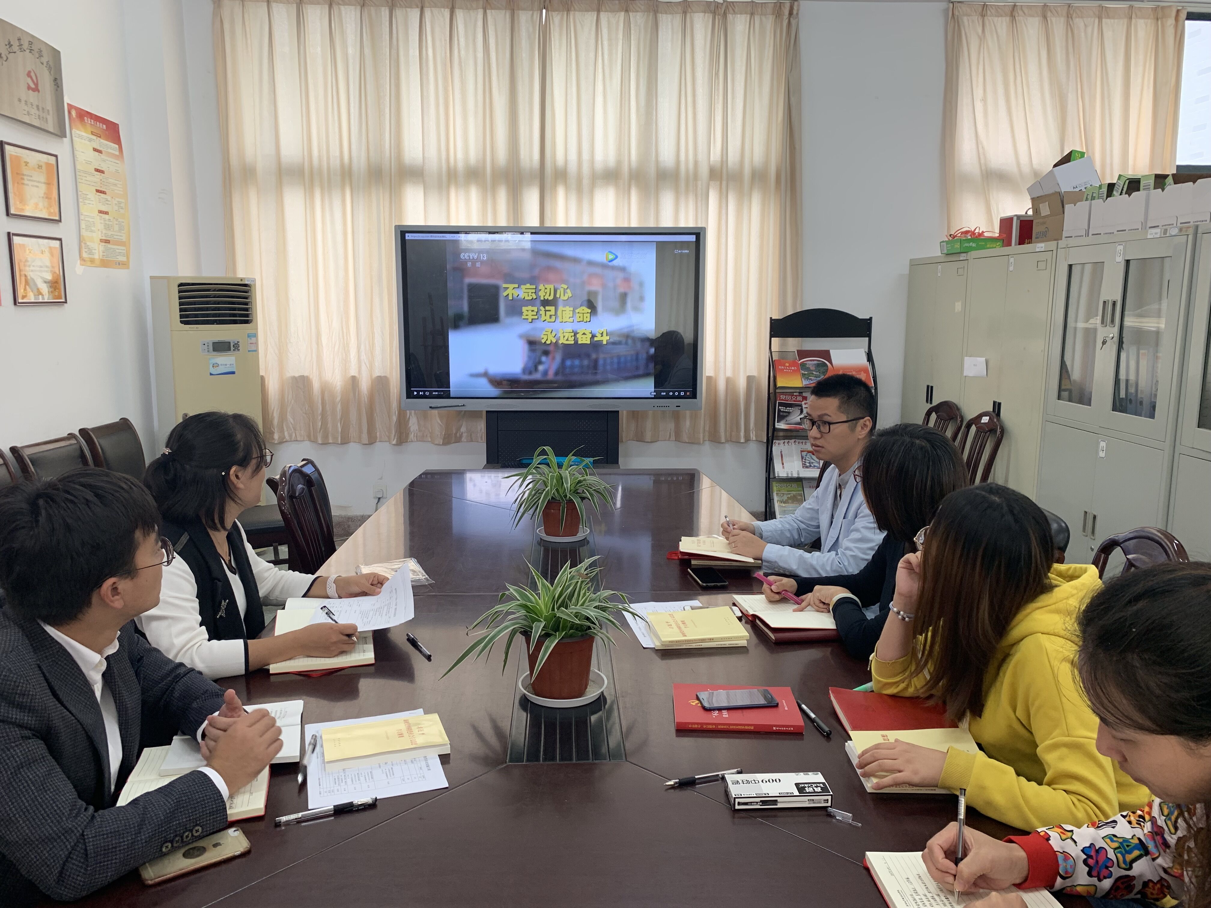 首先,各支部书记就教师党员近期在主题学习活动中的表现给予了肯定,并传达了学校关于进一步加强学习的新要求。随后,全体党员观看了《初心力量、使命担当》主题教育片,并集中学习了《习近平关于“不忘初心、牢记使命”论述摘编》部分内容。