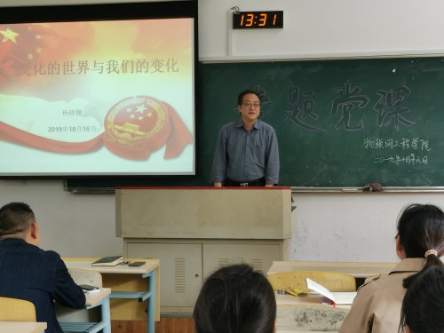 10月16日,物联网工程学院院长杨晓健召开题为“变化的世界与我们的变化”的专题党课。杨晓健从世界经济中心、世界政治格局、全球化进程之变、科技与产业之变、全球治理之变五个方面阐述了世界正面临百年未有之大变局;围绕习近平新时代中国特色社会主义思想“八个明确”和“十四个坚持”剖析了新时代要坚持什么和怎么样发展的问题;通过分析职业教育面临的“三个转变”、“三大挑战”和“四项改革”要求师生党员加强学习、创新理念;结合物联网学院工作实际希望大家从加强学习先进的理念、完善实训基地建设、1+X试点的推进和项目组推动等方面落实主题教育、真抓实干。
