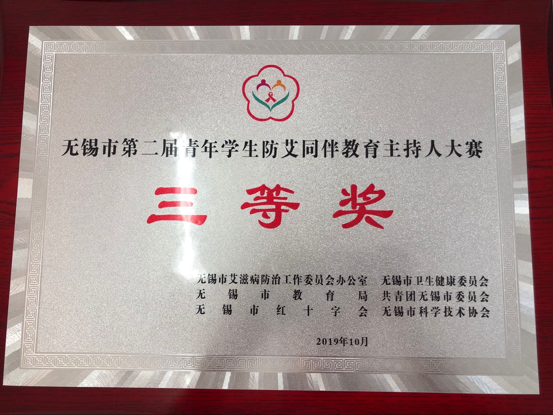 10月21日,由无锡市艾防办、无锡市卫生健康委员会、无锡市教育局、共青团无锡市委员会、无锡市科学技术协会、无锡市红十字会联合举办的无锡市第二届青年学生防艾同伴教育主持人大赛在江南大学举行,来自无锡、宜兴、江阴16个学校大中专院校的22支主持人团队参加了大赛。我校影视学院邵振新、戚慧慧两名学生参赛团队荣获三等奖,郭媛老师获得优秀指导老师奖。