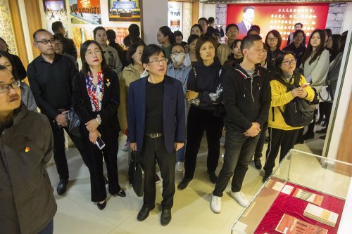 主题教育展厅内,党员同志们在“初心起航”“初心浴血”“初心永铭”等专题展区,通过350余幅历史照片和100余件文献资料,重温了无锡地区第一个党组织的创建历程,深切感受到中国共产党人为了革命理想抛头颅、洒热血的坚定信仰,全面回顾了共产党带领下无锡人民投身革命、建设和改革发展取得的辉煌成就。场馆里的每一件实物、每一个情景都代表无锡人民浴血奋斗的革命史、改革开放的成就史,其中不乏我校杰出校友的身影。