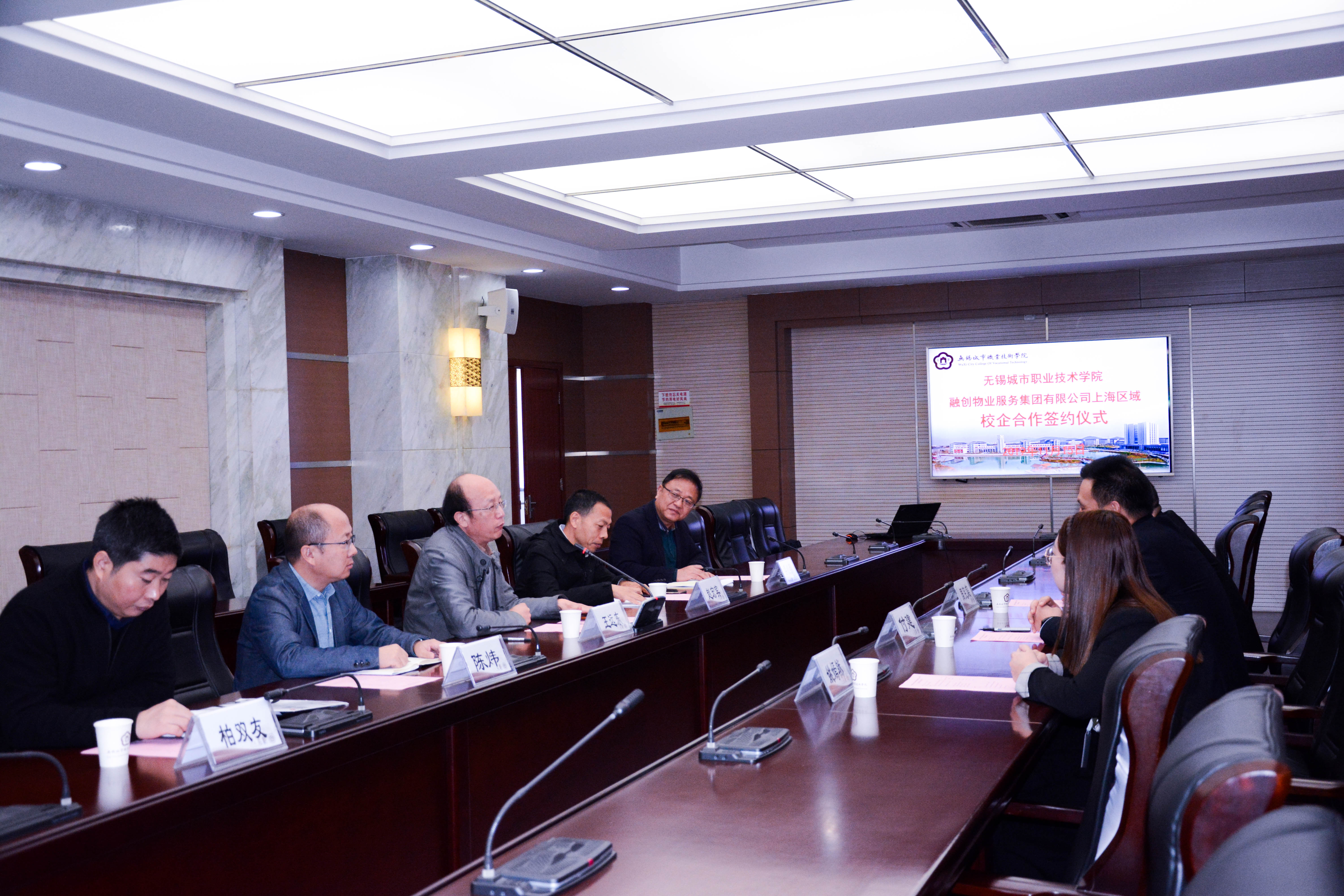 11月15日上午,融创物业服务集团有限公司无锡分公司总经理付建、人力资源部经理周宪庭、招聘主管姚嫣然等一行4人来我校进行校企洽谈及合作签约。副校长王远东、科技处副处长李继明,建筑与环境工程学院党总支书记赵宏宾、副院长陈炜、柏双友热情接待了来访客人。
