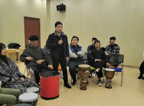 活动开始后,大家在老师的指引下开始敲打手中乐器,现场的音乐声跟随指挥忽而高昂忽而低沉,忽而激情澎湃忽而温婉柔和;大家或跟随模仿或自成一调,在音乐声中相互诉说、相互倾听、相互呼应。随后,夏老师引导快递小哥小妹和学生分别上台和现场观众互动,带来别样的体验。活动最后,夏老师带领大家进行冥想,在海浪和音乐的背景声中,大家跟随柔和的指导语,慢慢放松下来,忘却烦恼。