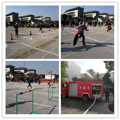 12月4日下午,我校2019年度消防运动会在北校区操场举行。本届消防运动会设有男子组“50米灭火毯灭火”、“50米障碍灭火器灭火”,女子组“30米灭火毯灭火”、“30米障碍灭火器灭火”,学生团体“水带接力”5个竞赛单元。各二级学院(部)、各职能部门及物业公司共21支队伍参加了比赛,惠山消防救援大队救援演练学生进行了观摩。