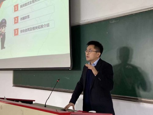 鞠爱军给同学们简要的普及了宪法和相关法律,同时就目前大学生常遇到的有关校园贷(网贷、裸贷等)、各种网络电信诈骗、不当劳动合同条例等一些违法行为,向大家介绍了这些违法行为以及相关知识的拓展,让大家知道如何防范、遵守和拿法律应对。讲座的最后,鞠爱军还告诫大家一切事物都只能靠合法的途径以及自己的双手努力去创造,要有敢于创新的勇气和魄力。
