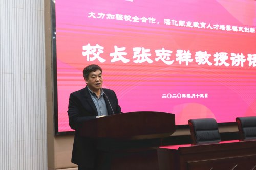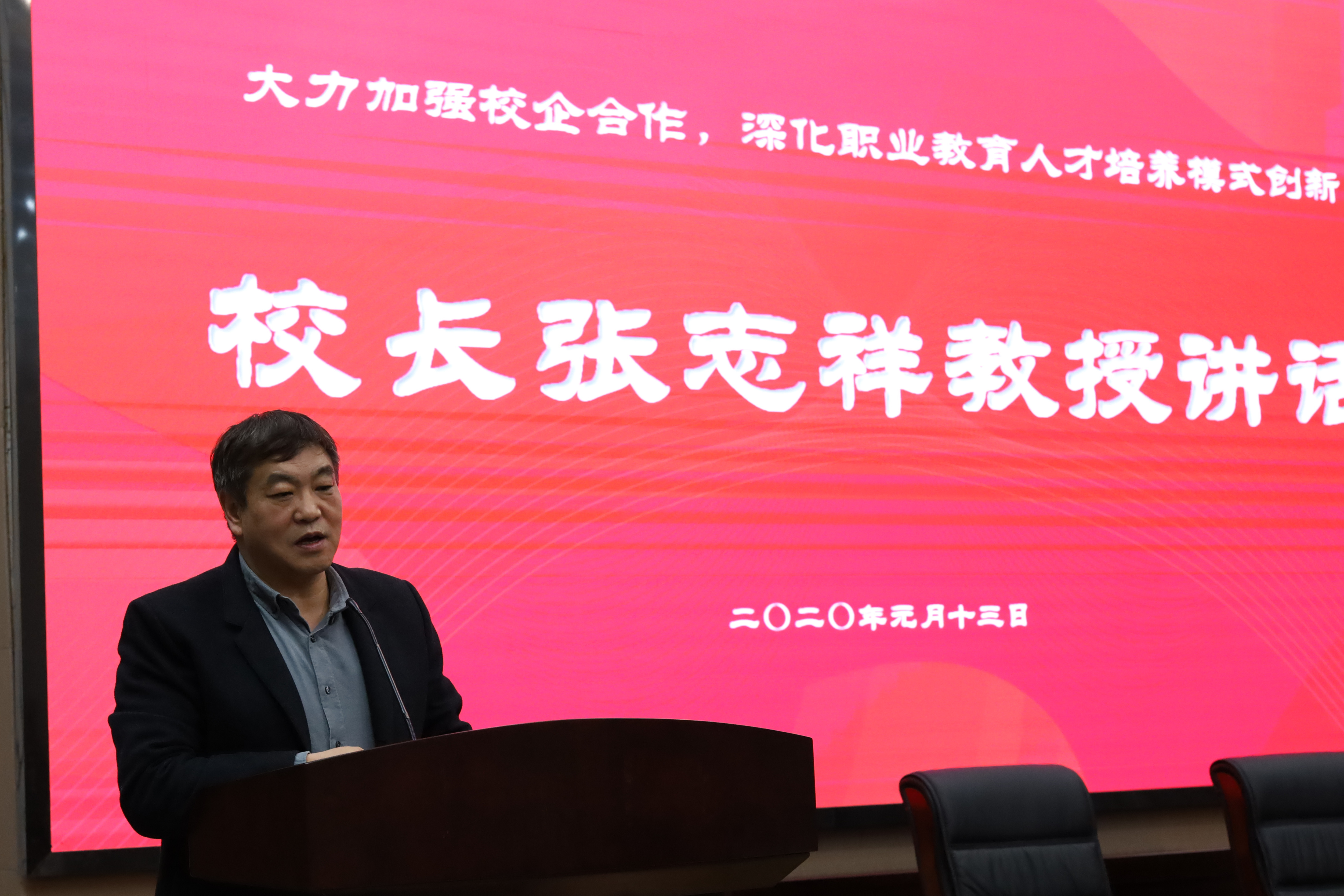 张志祥在讲话中指出,校企合作平台的搭建,关键是校企双方要有共同的价值观,校企合作平台是选择性的共享平台,企业选择学校,学校选择企业,把企业工作和学校学习结合起来,形成理实一体化的实践教育体系。校企双方要“心往一处想”,“力往一处使”,“脚往一处走”,做好产业与专业的对接、技术与课程的对接、岗位需求与学生就业的对接、企业质量与学生培养的对接。