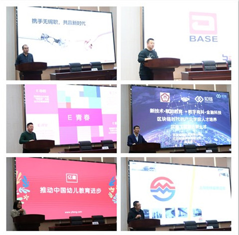 签约仪式后,与会企业家代表介绍了各自企业概况、具体合作项目和合作愿景。共同期待与我校在智慧校园建设、1+X证书制度试点、专业(群)建设、人才培养方案论证、课程建设、实验室建设、师资互聘、实训基地建设、冠名班、现代学徒制及社会培训、科技合作和项目开发等方面进行深度校企合作和产教融合。