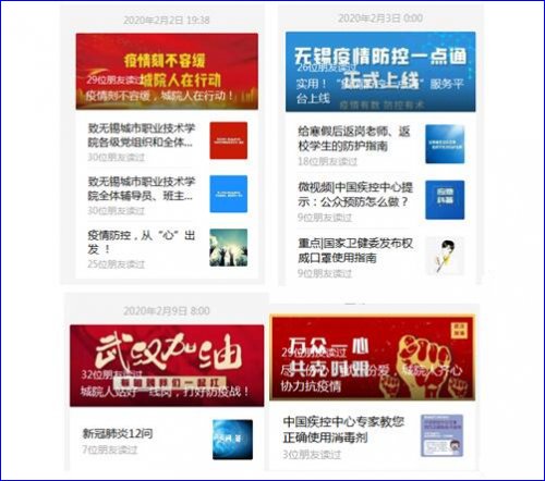 学校还通过微信、微博、校园网、QQ群、办公系统等线上渠道,积极做好疫情防控宣传工作。每日发布防控小贴士,科学“战疫”;向全体党员和全校师生发出倡议书,同心“战疫”;宣传奋战疫情防控一线的典型,温情“战疫”。系列推送被师生广泛转发,在全民“战疫”的关键时刻传递正能量。