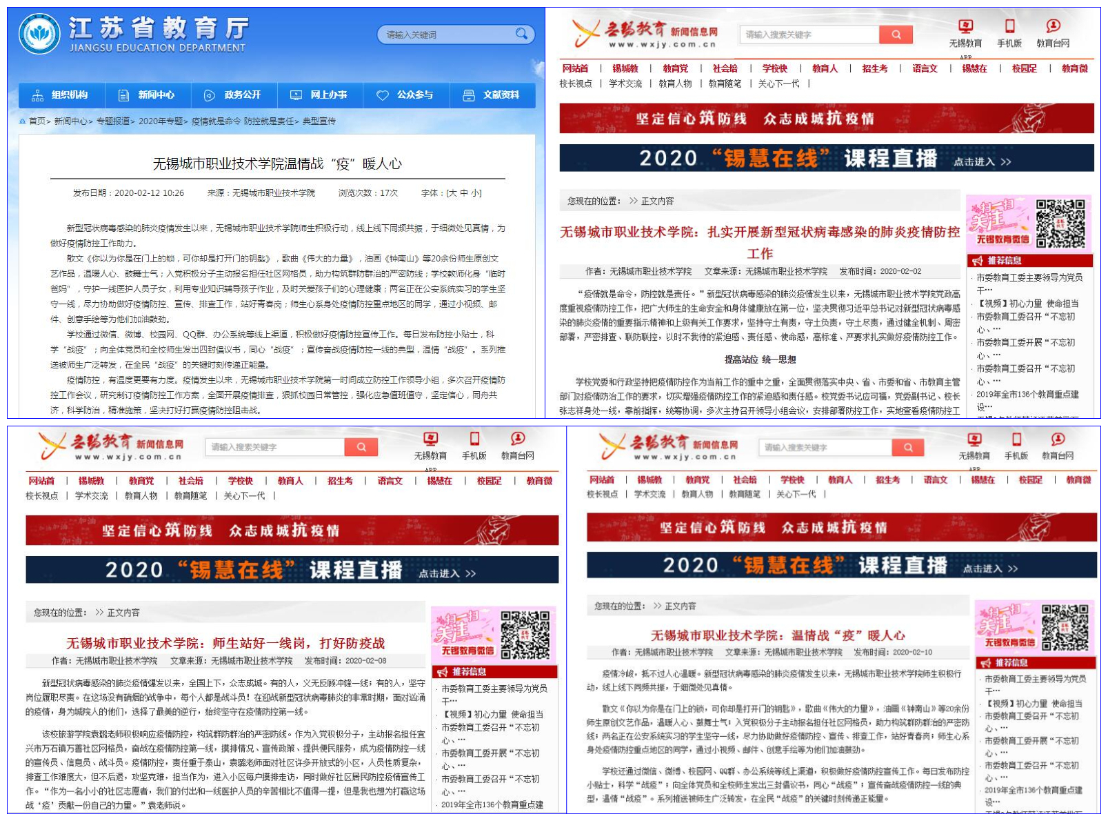省教育厅、市教育局官方网站多次宣传报道我校疫情防控举措和师生先进事迹