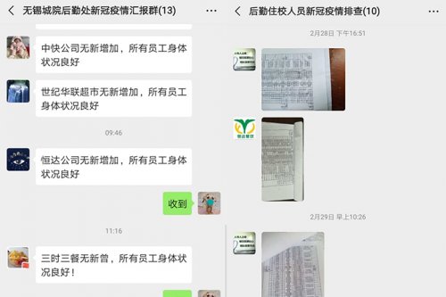 后管处为确保校园服务力量常备常在,对在校工作人员、离校待用人员及外地未归员工均实行每日健康状况及所在地监控,确保当值服务团队身体健康,以及备用支援团队随叫随到;提前两周制定疫情期间值班表,确保校园服务7天24小时全覆盖;严格做好各区域通风换气及个人防护措施,按照清洁、备餐、医务、检查等工作需求,提供防护服、护目镜、口罩、手套、消毒液等不同的防护措施。
