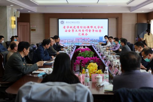督查组一行完成校园检查工作后,在我校行政楼308会议室听取了新冠肺炎疫情防控保障及安全工作情况汇报会,我校全体党政领导班子成员参加了汇报会。