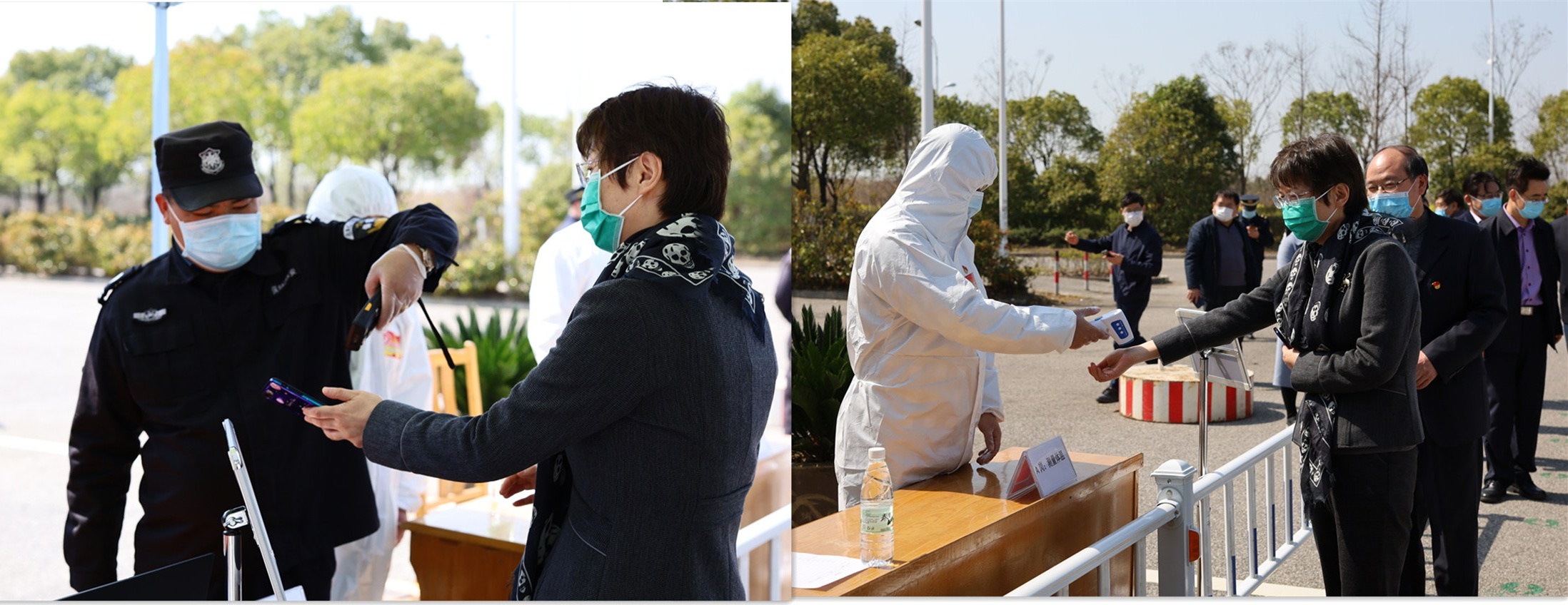 督察组一行首先就我校的各项疫情防控措施进行了实地考察,校党委书记、学校疫情防控工作领导小组组长应可福,校长、学校疫情防控工作领导小组组长张志祥,副校长、学校疫情防控工作领导小组副组长梅亚萍陪同考察。