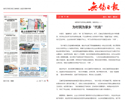 “直播带货”这把火“烧”到了锡城学生中。昨天,记者在无锡城市职业技术学院看到,8名学生正在学习如何当网络主播。不过这群年轻人的目标并不是当“吸睛又吸金”的网红,他们正在学校、企业和政府部门搭建的平台上,学习为田间地头的农产品甚至为家乡“代言”。