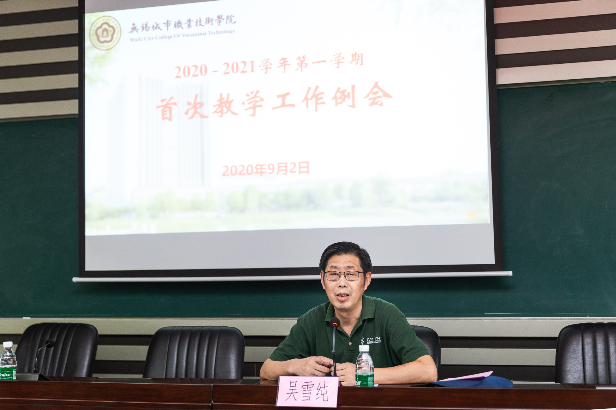 吴雪纯从“紧紧围绕一个主题”、“两手抓两手都要硬”、“三个关键词”、“四点要求”、“五块工作”、“六项近期重要任务”等对新学期的教学工作作出了全面部署。吴雪纯强调,要紧紧围绕高质量发展这一主题,要协同推进疫情防控与教学工作,要潜心研究“十三五”收官、“十四五”开局及攻坚克难项目的关键要素,要把握职教大势、找准目标定位、坚持立德树人、矢志争先创优,要科学布局《习近平总书记教育重要论述》的学习贯彻、教学秩序的全面恢复、“十三五”规划的完美收官(以优异成绩通过省高等职业教育高水平骨干专业验收等)、“十四五”规划的良好开局(全面实施省职业教育质量提升行动计划等)、聚力攻坚若干重大建设或培育项目等五块工作,要统筹做好开学准备、省技能大赛、人才培养状态数据采集、2020级人才培养方案再完善、新教务系统功能全面实现、教材建设及管理等六项近期重要任务。(文:唐德淼;图:王彧;审核:吴雪纯)