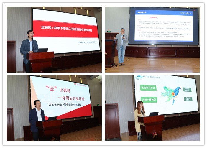 本次研讨会共有三个单元。第一单元为主题讲座,我校副校长梅亚萍、马克思主义学院院长贾迅和中国职业技术教育学会理事教授李超,分别就《后疫情时代主题教育活动的德育价值与实施策略》《互联网+背景下思政人员德育自觉性培育》《如何利用信息化手段优化学校德育工作》进行了专题讲座。第二单元里,我校教师张可嘉、江苏省陶都中等专业学校教师陈丽明分别和大家分享了题为《“我眼里的浪漫分你一半”主题影像季活动》和《“爱在抗‘疫’进行时,社会责任勇担当”主题教育活动》的教育案例。第三单元,无锡机电高等职业技术学校曾海娟老师、江苏省惠山中等专业学校教师郭斌斌和宜兴高等职业技术学校教师刘彬结合自己多年来的育人经验向大家分享了互联网时代的独特育人经验。