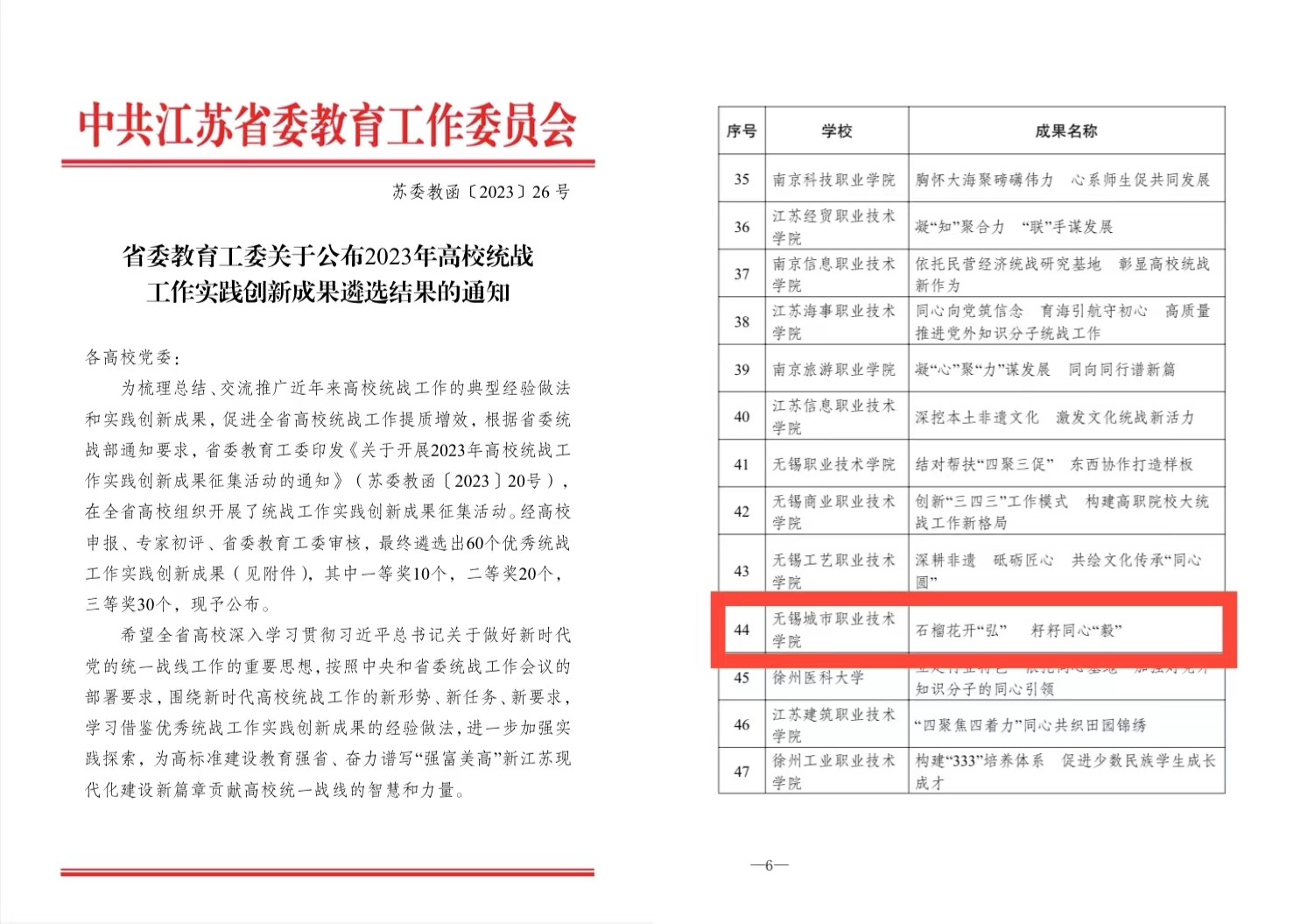 我校获省委教育工委2023年高校统战工作实践创新成果奖 | ||||