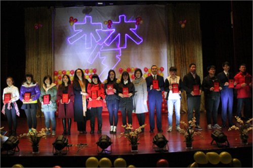 本次晚会以“开启新征程,共筑旅游梦”为主题,在一段回望2014年的旅游系视频之后,颁奖典礼正式开始,副院长瞿立新、旅游系副主任李光宇、旅游系党总支副书记陈霞分别为在学风建设、宿舍生活、体育运动、志愿服务、技能竞赛中表现出色的师生颁发荣誉证书,以表彰他们为系部发展做出的贡献。