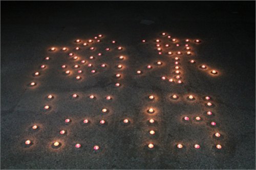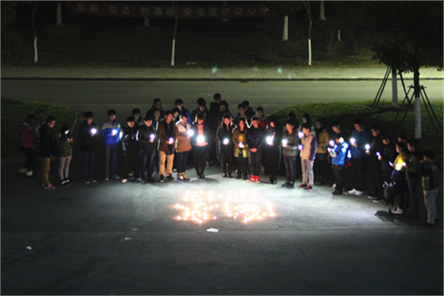 1937年12月13日,侵华日军攻陷南京,超30万中国民众在南京大屠杀中死去。2014年12月13日,是我国首个南京大屠杀死难者国家公祭日,当晚,我院艺术设计系学生在食堂北门用象征着哀思的红烛摆出了“南京12.13”的字样,以此来纪念南京沦陷后被迫害的同胞们,并祈祷世界和平。 12月13日晚18:00,随着揪心的警报声响起,学生们手捧白烛,肃立默哀三分钟,告慰南京大屠杀中的遇难同胞。微弱的白光映出同学们一张张庄严肃穆的脸庞,伴随着警报声的结束,全体同学向用红烛摆出的“南京”二字三鞠躬,祭奠在惨案中死难的国民,追思抗日战争期间革命烈士的丰功伟绩,并对他们致以崇高的敬意与深切的缅怀。 少年强,则国强。作为当代大学生肩负着国家未来发展的使命,青年们要永远记住历史,勿忘国耻。据悉,近阶段,青年学生们还在国家公祭网上进行了献花、添砖等悼念活动。 撰稿:李宁宁来源:艺术系 学生用象征着哀思的红烛摆出了“南京 12.13“的字样 |