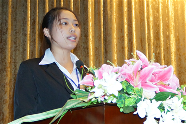 市学联秘书长助理周俊与江南大学学生会主席孙晓蕾分别发言