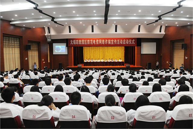 为进一步提高广大师生防范电信网络诈骗的能力,6月17日上午,由无锡市公安局、市学校管理中心及藕塘职教园区联合举行的职教园区防范电信网络诈骗宣传活动启动仪式在我院报告厅举行。市公安局副局长缪小展、市学校管理中心副主任边静玉、钱桥街道党工委书记刘俊伟、惠山区公安分局局长丁旭东、我院党委副书记刘彬及市公安局办公室、指挥中心、刑警支队、内保支队、禁毒支队、职教园区等有关部门领导和职教园区各院校师生代表共计400余人参加了此次启动仪式。我市多家主流媒体对此次启动仪式进行了现场采访和报道。 |