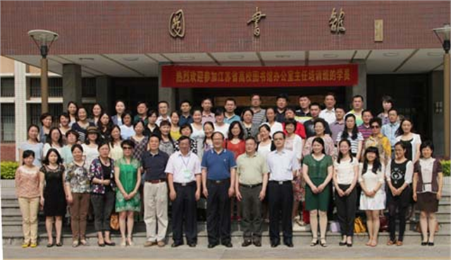 CALIS上机培训现场2014年江苏省高校图书馆办公室主任培训班合影为不断提升图书馆馆员的业务能力,更好地服务教育教学、科研工作,近日,院图书馆组织多名馆员参加CALIS、省图工委、万方数据等多项业务培训。