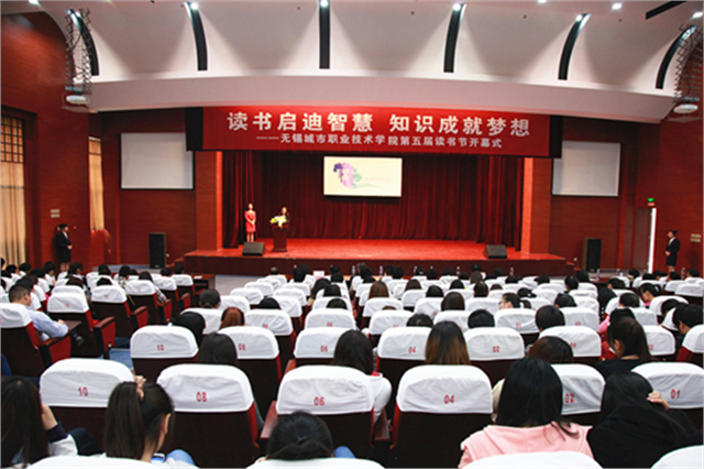 我院第五届读书节隆重开幕院党委书记高建宁教授致辞学院领导为2013-2014学年院“阅读之星”、“书香班级”颁奖4月23日是世界读书日,以“读书启迪智慧,知识成就梦想” 为主题的 “2014无锡城市职业技术学院第五届读书节”在院图文信息中心报告厅举行开幕仪式。院党委书记高建宁及各系、各部门负责同志出席。高建宁书记在开幕式上致辞。