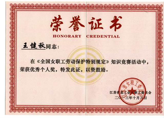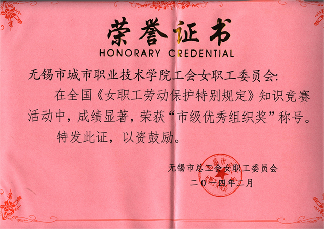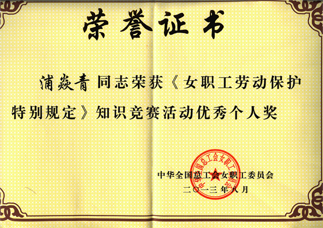 经管系浦焱青老师获全国优秀个人奖建工系王健秋老师获省级优秀个人奖院工会获市级优秀组织奖近日,从市总工会获悉,在2013年全国《女职工劳动保护特别规定》知识竞赛活动中,我院取得了优异成绩。我院经管系浦焱青老师获全国优秀个人奖,建工系王健秋老师获省级优秀个人奖,院工会获市级优秀组织奖,获得市总工会女职委的通报表彰。