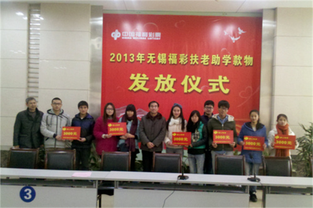 我院学生代表接受爱心助学款12月30日下午,无锡福彩爱心助学"12512"工程捐助仪式在市福利中心举行。我院党委副书记刘彬出席发放仪式。