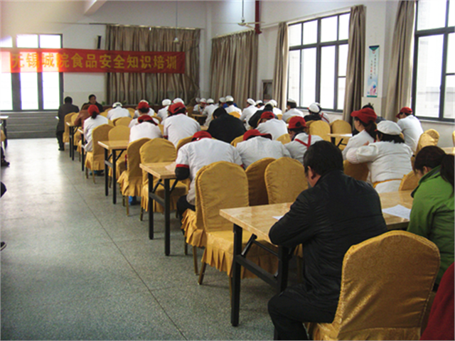 培训现场12月26日下午,后服公司邀请疾控中心王正兴科长来我院作“食品安全卫生知识培训”的讲座,食堂全体员工到场参加。