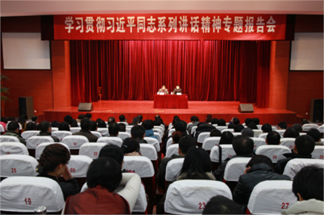 报告会现场院党委书记高建宁教授主讲报告会院党委副书记刘彬同志主持讲座12月11日下午,我院举行全院专题党课报告会,学习贯彻习近平同志今年6月28日在全国组织工作会议上的重要讲话精神。全体院领导、南北校区全体中层干部、教职工党员参加了报告会。