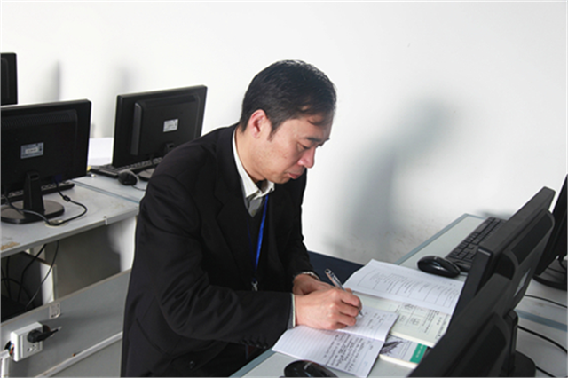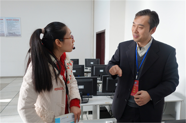 专家祝木伟认真听课并做详细的记录专家与任课教师进行交流听课现场11月16日上午,评估专家组专家祝木伟在实训楼5403教室听取建筑工程系陈一虹老师讲授的《建筑CAD》 课程。
